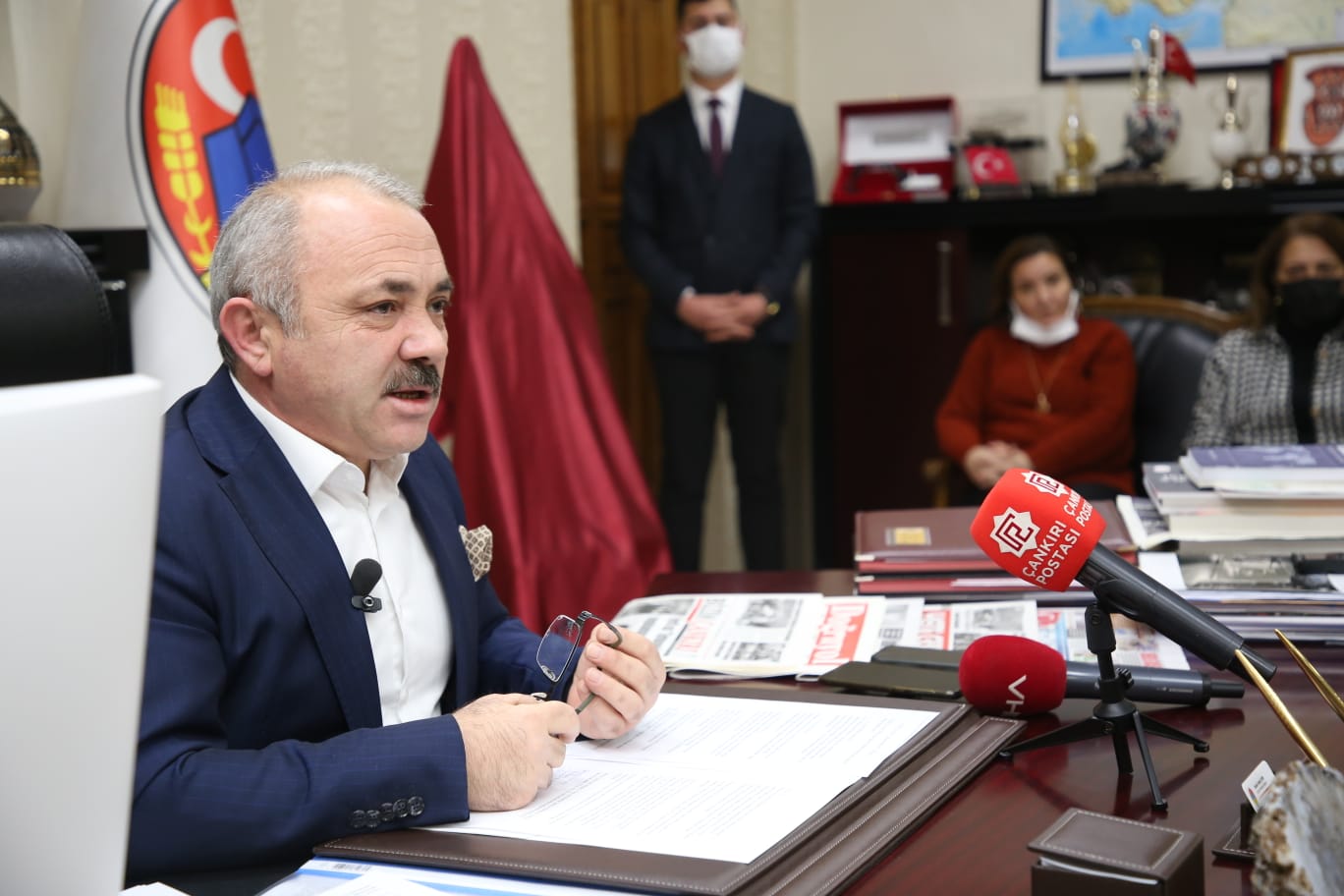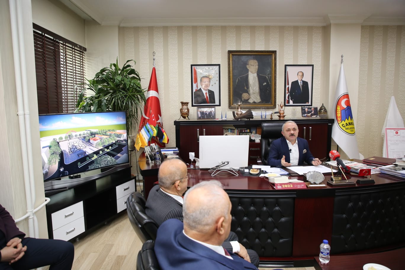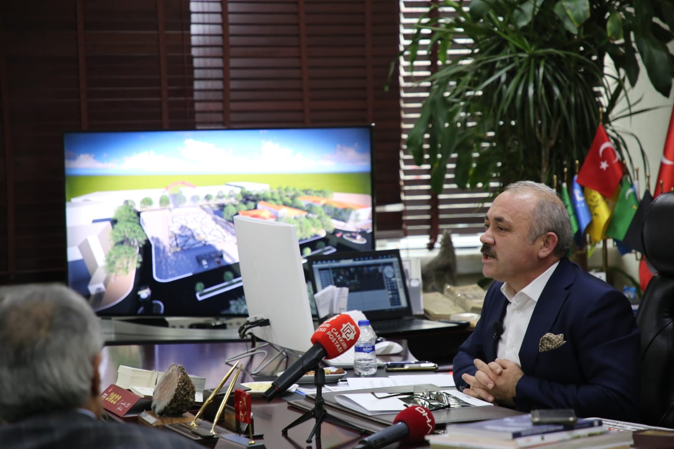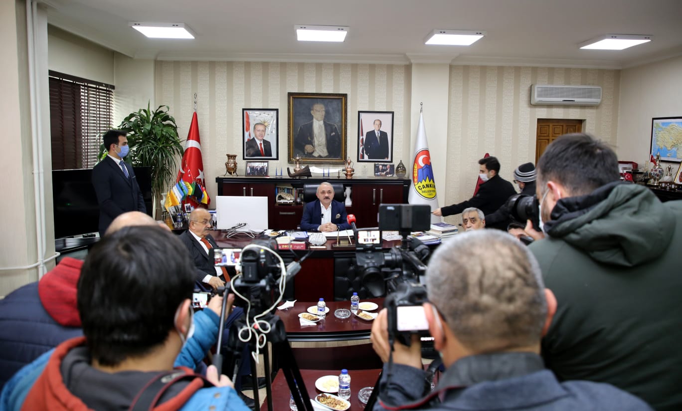 Çankırı Belediye Başkanı İsmail Hakkı Esen, basın toplantısı düzenleyerek projelere ve güncel gelişmelere ilişkin değerlendirmelerde bulundu. Başkanlık makamında basın mensupları ile bir araya gelen Esen, “Çok şükür bugün itibari ile SGK’nın olduğu alanın tapusunu aldık. Hayırlı olsun.”  diyerek Çankırı gündemini meşgul eden Kent Meydanı Projesi’nin müjdesini verdi.