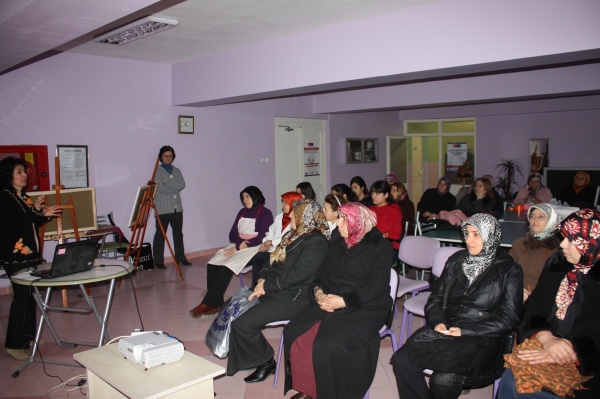 KETEM’de görevli eğitim hemşireleri Hülya Aslan ve Meral Karakaya’ nın sunumu ile Belediyenin 7. katında 3 gün süreyle kanser çeşitleri, eğitimde dengeli beslenme, sigaranın zararları, serviks (Rahimağzı Kanseri), meme kanseri konusunda bilgi verildi.