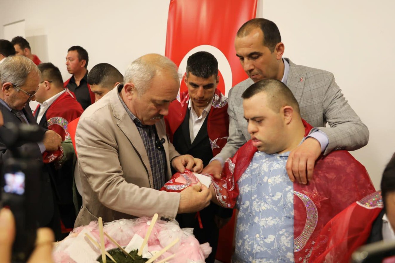 Çankırı Belediyesi tarafından “Engelliler Haftası” dolayısı ile düzenlenen “Kınalı Kuzular Asker Oluyor” etkinliği aileleri duygulandırdı. Omuzlarında pullu kına örtüleri ile sahneye çıkan özel gençler, kınaları yakıldıktan sonra bir günlüne asker oldu.