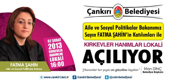 Hanımların ev ortamı dışında daha aktif olmalarını sağlamak, ilgi duydukları alanlarda bilgi ve becerilerini arttırmak amacıyla belediye tarafından Kırkevler Mahallesi’ne kurulan Çankırı’nın ikinci hanımlar lokalinin resmi açılışı,  Aile ve Sosyal Politikalar Bakanı Fatma Şahin’in katılımı ile gerçekleşecek.