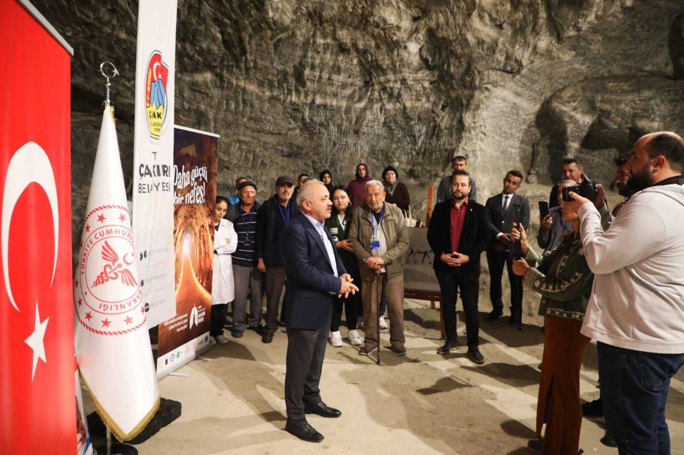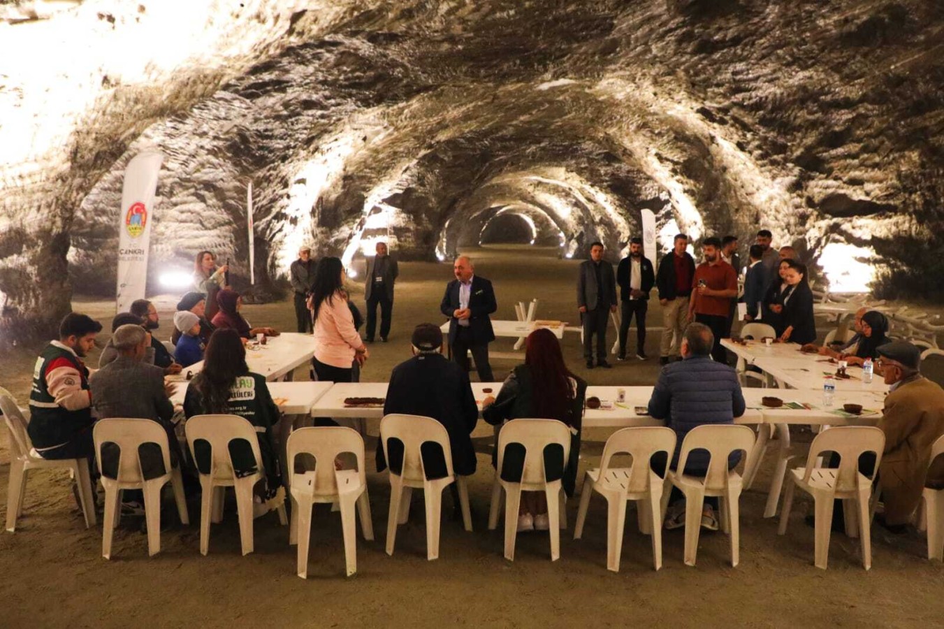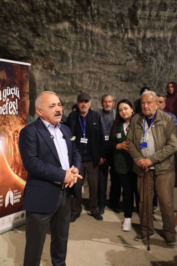 Çankırı Belediye Başkanı İsmail Hakkı Esen, “Daha Güçlü Bir Nefes” sloganı ile sağlık turizmine açılan Yer Altı Tuz Şehri’nde tedavi gören KOAH hastalarını ziyaret etti. Uzman doktorlar ve yardımcı ekipler eşliğinde Tuz Mağarasında sosyal ve kültürel etkinliklere katılan 15 kişilik grup, kaya tuzu ile kaplı mağaradan gördükleri şifayı Başkan Esen’e anlattı.
