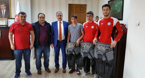 Çankırı Belediye Başkanı İrfan Dinç, Belediye Gençlik Spor Kulübü adına mücadele eden genç güreşçilerine kıspetlerini hediye etti.