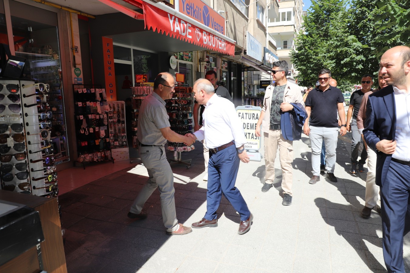 Esen, daha sonra bölgedeki esnaf ile selamlaşarak sohbet etti.