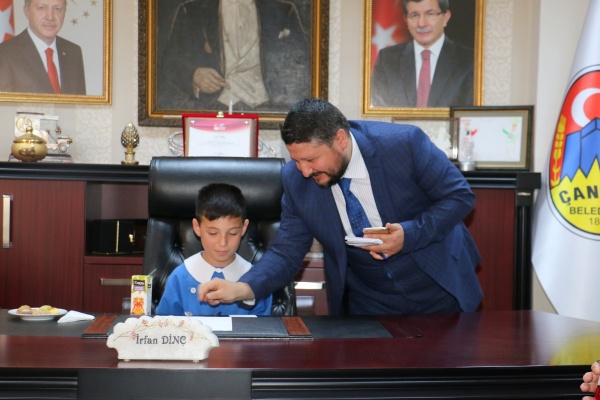 23 Nisan Ulusal Egemenlik ve Çocuk Bayramı münasebetiyle, Belediye Başkanlığı koltuğunu Başkan İrfan Dinç'ten devralan, TOKİ İlkokulu 4. sınıf öğrencisi, Hasan Coşkun, öncelikli olarak okulunun bahçesine oyun parkı yapılmasını istedi.