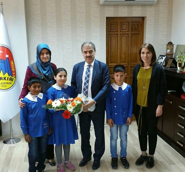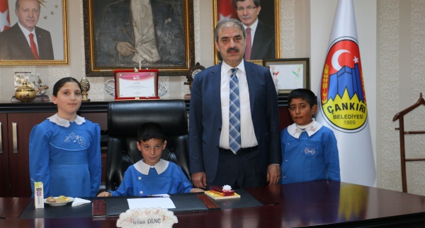 Başkanlık makamına öğretmenleri ile birlikte gelen TOKİ İlkokulu öğrencilerinden Hasan Coşkun, Yaşar Şahin ve Zeynep Emekli'yi Belediye Başkanı İrfan Dinç, kapıda karşıladı. Başkan Dinç'e çiçek takdim eden öğrencilerden Hasan Coşkun, başkanlık koltuğunu devraldı. Başkan Yardımcılarımız ve Birim Müdürlerimizin de hazır bulunduğu Başkanlık makamında Hasan Başkan, çalışmalarla ilgili gerekli talimatları verdi.