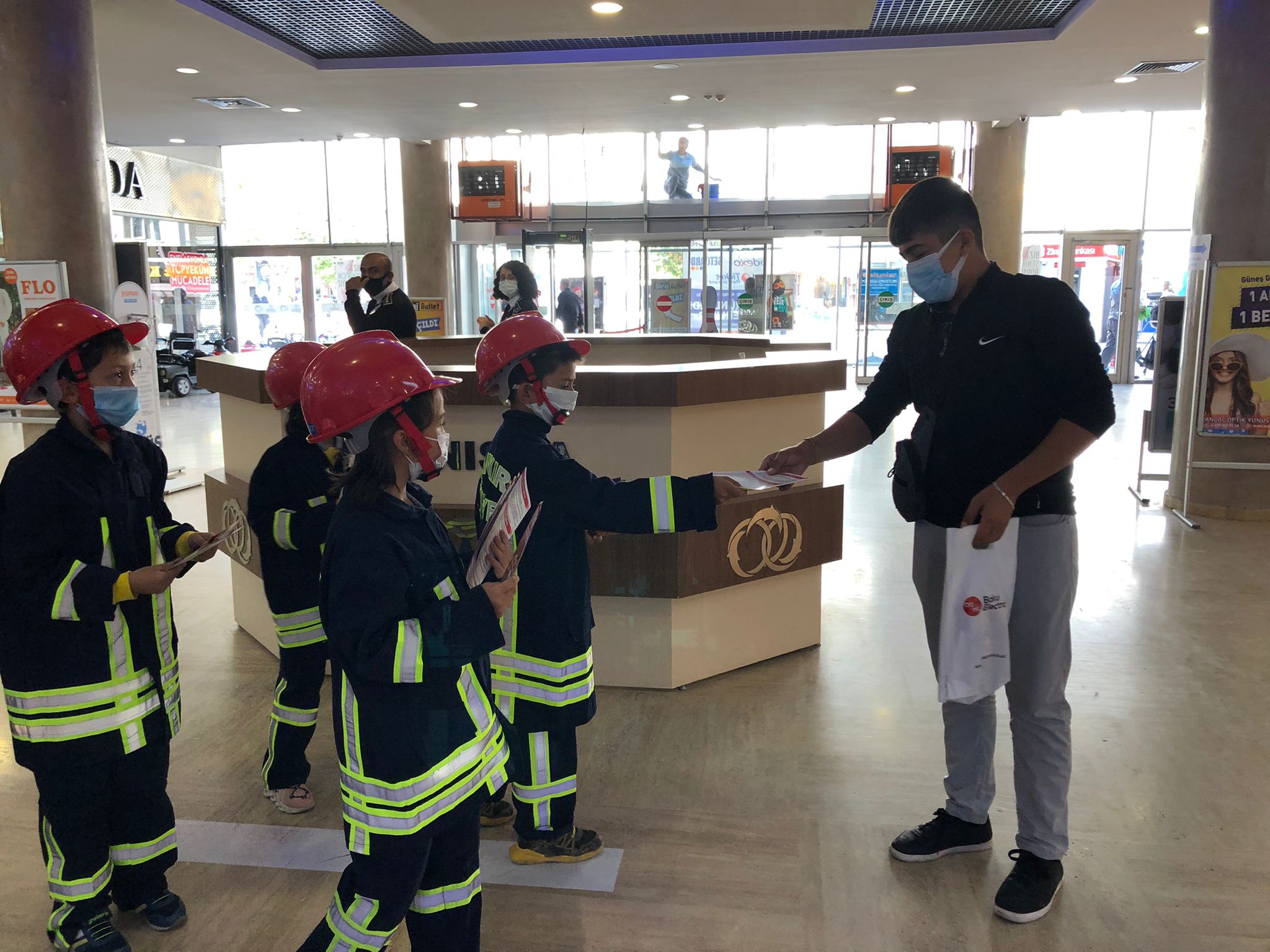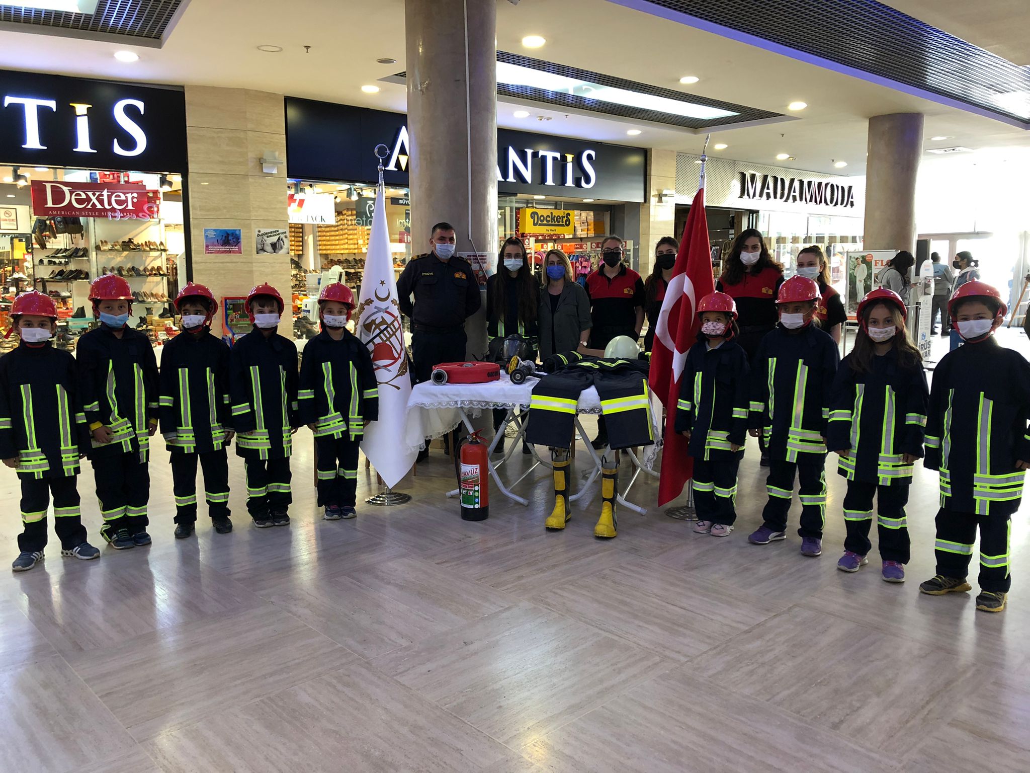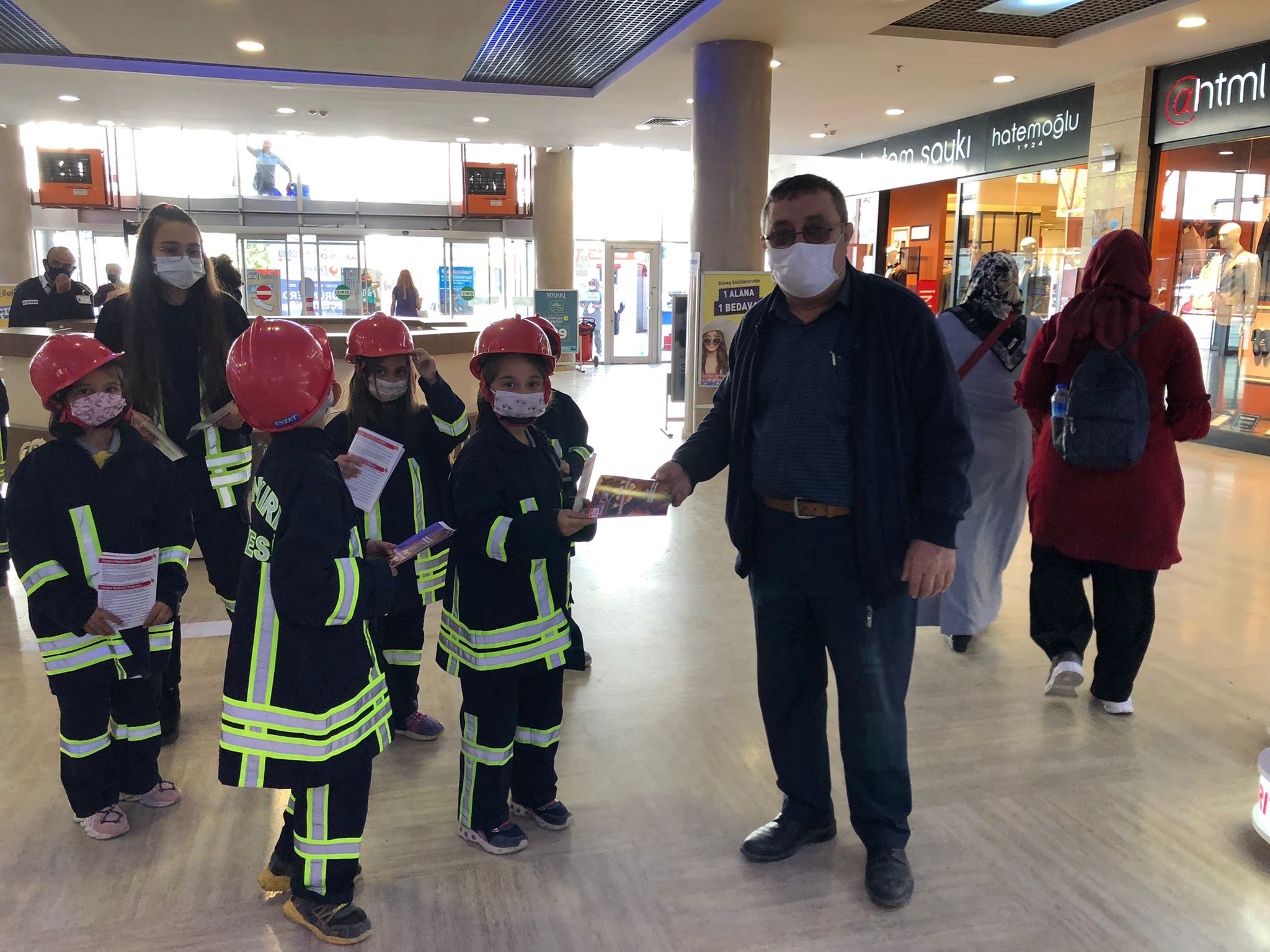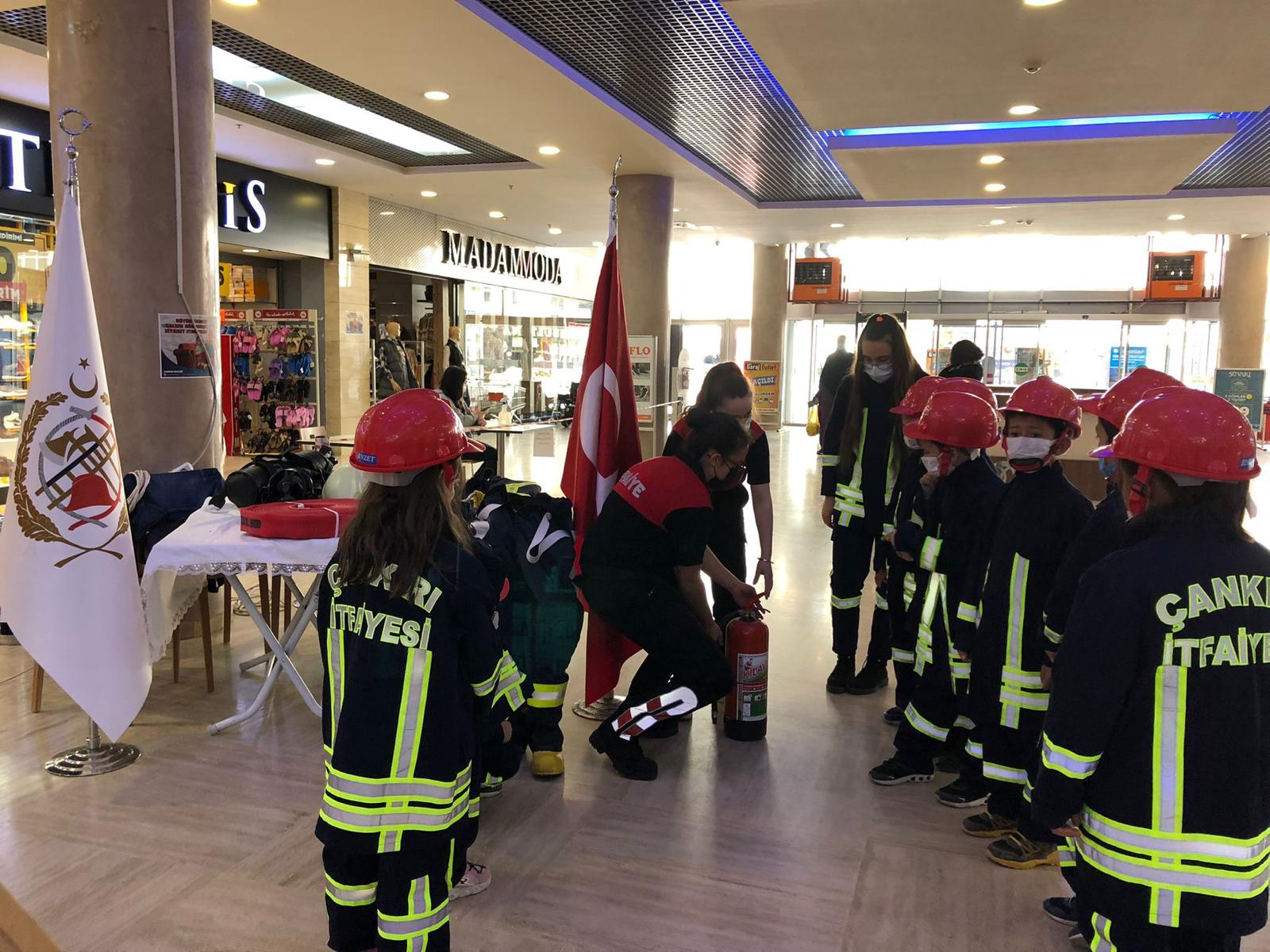 Çankırı’da öğrenciler, itfaiyeci kıyafetleri giyerek vatandaşa bilgilendirici broşür dağıttı. Yunus AVM girişinde bir araya gelen küçük itfaiyeciler, İtfaiye Haftası dolayısı ile öğrencilerden gelen resimleri de sergiledi.