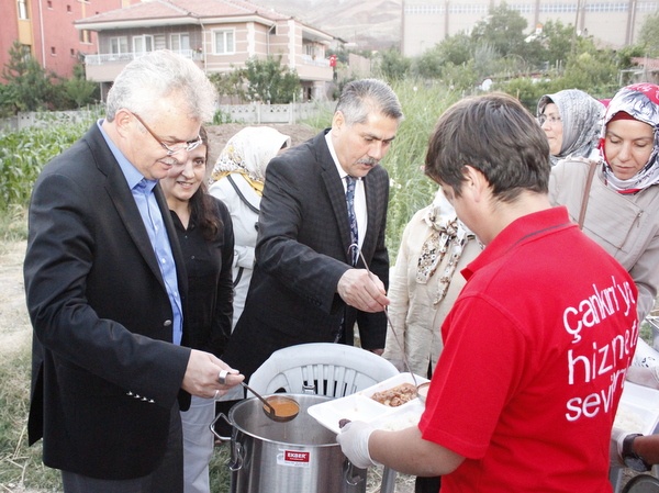 Makas Fabrikası altındaki Deveciler Mevkiinde iftar sofrasında halkla buluşan Belediye Başkanı İrfan Dinç, Vali Vahdettin Özcan ve İl Emniyet Müdürü Ali Murat Dağlı ile birlikte yine belediye tarafından Küçük Sanayi esnafına yönelik düzenlenen iftar yemeğine katıldı. Samimi bir ortamda gerçekleşen iftar yemeğinin ardından Küçük Sanayi esnafı sürpriz yaparak sanayi ve sanayi esnafı için yaptığı hizmetlerden dolayı Dinç’e teşekkür plaketi verdi. Esnafın isteği üzerine plaket Vali Özcan tarafından Başkan Dinç’e takdim edildi.