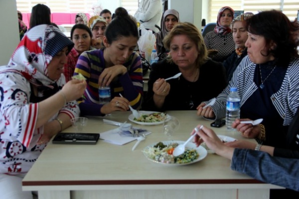 Hanımlar Lokali üyeleri, yapılan salata ve mezelerden yiyerek eğlenceli bir gün geçirdiler.