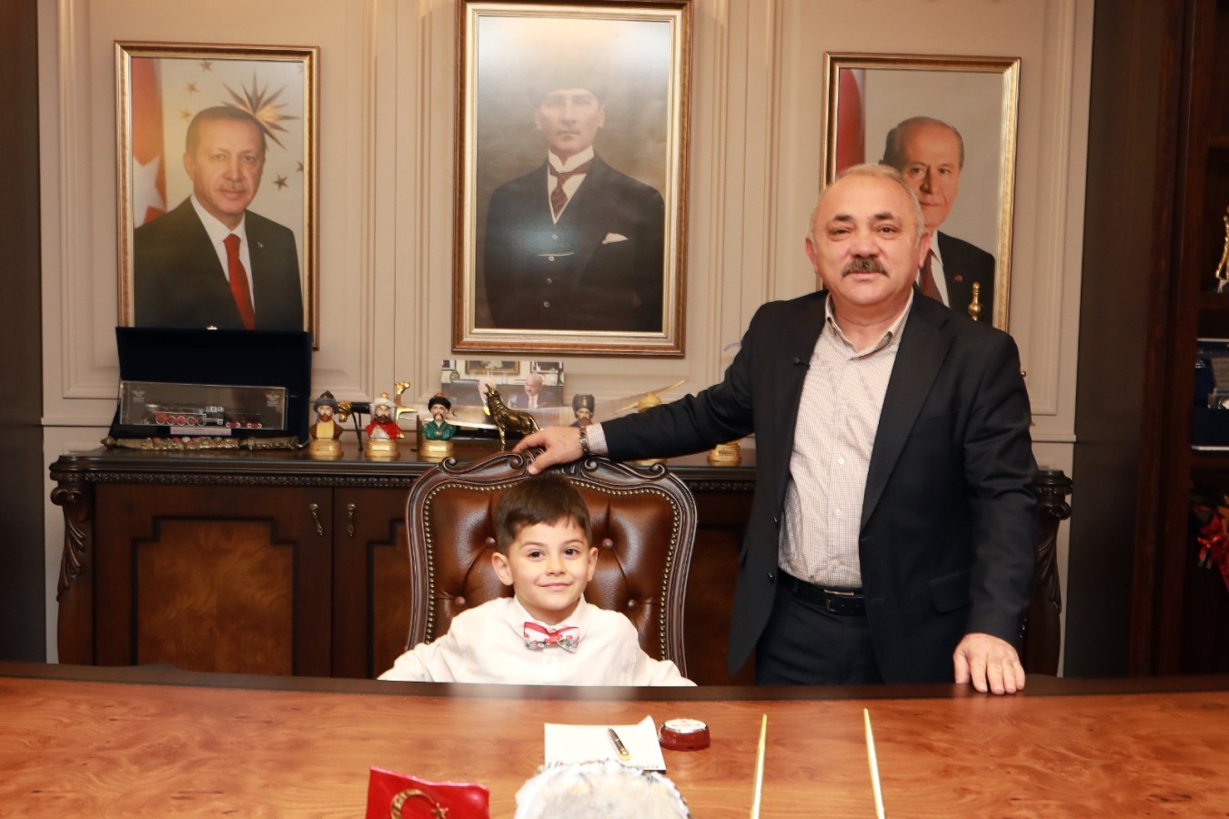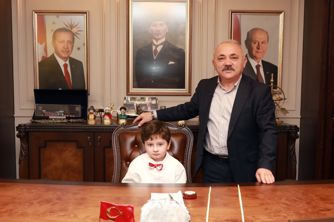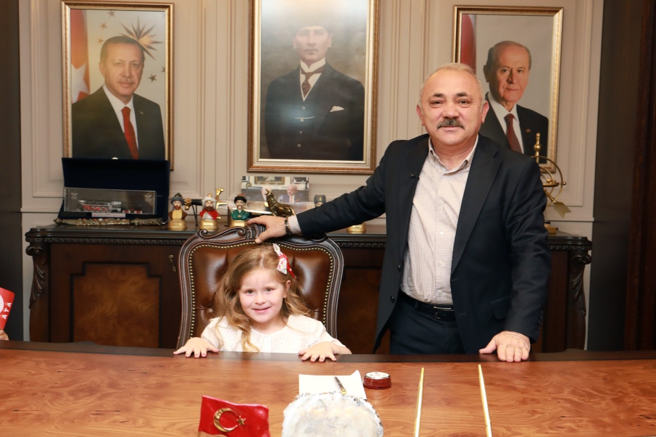Çankırı Belediye Başkanı İsmail Hakkı Esen, 23 Nisan Ulusal Egemenlik ve Çocuk Bayramı dolayısıyla makamını bu kez minik misafirlerine açtı. Çankırı Belediyesi Fatih Sultan Mehmet Çocuk Akademisinin öğrencileri, bayram coşkusunu paylaşmak üzere Başkan Esen’i ziyaret etti.