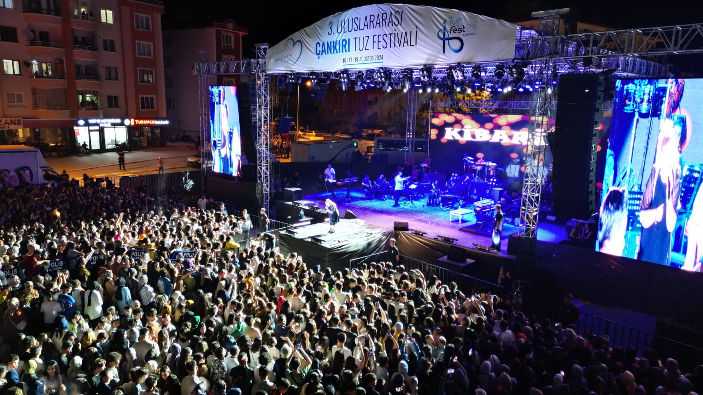 3. Uluslararası Çankırı Tuz Festivali’nin akşam konserleri başladı. Festivalin birinci gün etkinlikleri, akşam saatlerinde Fuar Yolu’nda düzenlenen ünlü sanatçılar Kibariye ve Hakan Altun konserleri ile büyük coşkuya dönüştü.