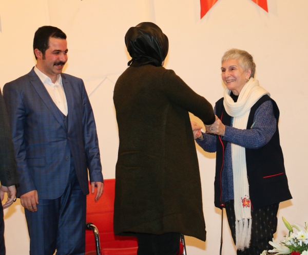 Programın sonunda konuşmacı olarak katılan Selma Argon ve Araştırma Görevlisi Muhammed İkbal Gürel ‘e el sanatlarından yapılan tablo hediye edildi.