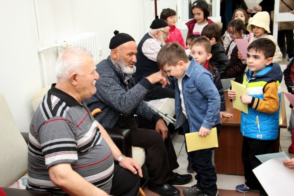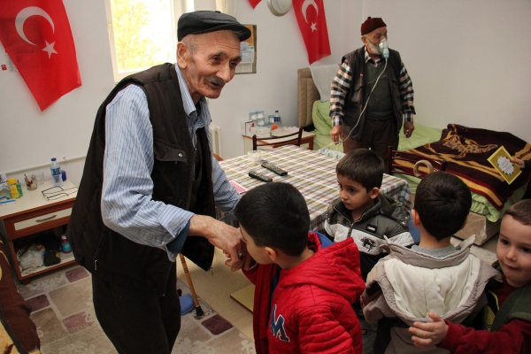 Çankırı'da Yaşlılara Saygı Haftası’ndan dolayı "Nesiller Arası Buluşma" programı düzenlendi. Belediye Yaşlı Koordinasyon Merkezinin hafta boyunca düzenlediği etkinlikler kapsamında Belediye Şehit Eren Bülbül Kreşi’nden 40 öğrenci, İsmail Özdemir Huzurevi sakinleri ile bir araya geldi. Değerler Eğitimi kapsamında Kur’an-ı Kerim okumaya geçen minikler, büyüklerine de marifetlerini gösterdi. Öğrenciler, öğrendikleri duaları ve ilahileri ninelerine ve dedelerine okuyarak onların takdirini kazandı. Çocuklar, etkinliğe katılamayan büyüklerini odalarında ziyaret ederek yaşlılar haftasını ve kandillerini kutladı. Çocuklar, hazırladıkları kandil mesajlarını ninelerine ve dedelerine hediye ederek helva da ikram etti. Minik fidanların sevgisi ve enerjisi yaşlı çınarlara da moral oldu. Belediye Başkanı İrfan Dinç, nesiller arası buluşmayı kültürel bir aktarım olarak gördüklerini belirterek “Küçüklerin büyüklerine hürmet ettiği, büyüklerin de küçüklerine sevgi gösterdiği aile tablosu hepimizi mutlu ediyor.” dedi.