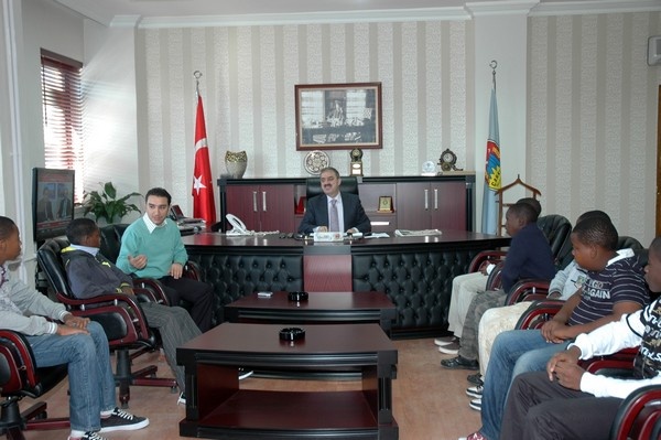 Nijerya’nın Başkenti Abuja’daki Türk okul’u 7.sınıf öğrencileri Türkçe öğretmenleri Gökhan Hoca ile birlikte ziyaret ettikleri Başkanımız İrfan Dinç’le hoş bir sohbet gerçekleştirdiler. Ekibin abisi Nijeryalı Osman, Türklerin, Türk insanının çok sıcak ve misafirperver olduklarını ifade ederken, İstanbul ve Ankara’yı gezerken oraların kalabalık şehirler olduğundan dolayı biraz karmaşık bir gezi olduğunu, ama Çankırı’ya gelince Türkiye’nin ferahlığını hissettiğini söyledi.