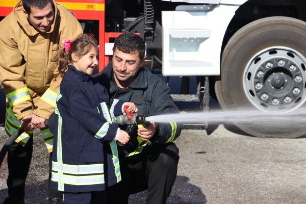 Minik itfaiyeciler, İtfaiye Müdürlüğünün yangın ve kazalara müdahalede hangi araç ve donanımları kullandıklarını öğrendi. K9 cinsi arama ve kurtarma köpekleri ile tanışan minikler, yangın tüpünü kullanmayı da öğrendi. Özel öğrenciler, küçük tatbikatta önemli bilgiler öğrenirken eğlenceli vakit de geçirdi.