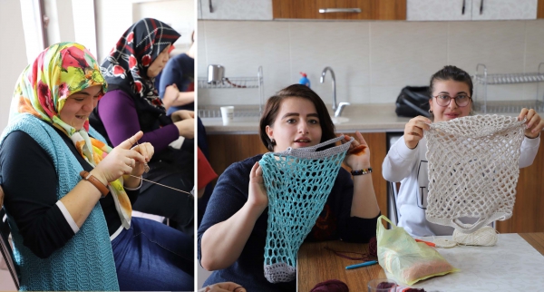 Çankırı Belediyesi ve İŞKUR iş birliği ile başlatılan kursa katılan 35 özel öğrenci, üç ay boyunca Belediye’nin 7. katında farklı alanlarda eğitimler almaya başladı.  Eğitimler kapsamında file çanta ören özel öğrenciler, çevre bilincine destek olurken aile bütçelerine de katkı sağlıyor. Kursa karılan öğrencilere aileleri de eşlik ediyor. Ellerine tığlarını alan anneler, çocukları ile birlikte rengârenk file çantalar örüyor.  Sıfır Atık Projesi’ne katkı sağlamak için Belediye Başkanı Hüseyin Boz’un girişimleri ile başlatılan proje kapsamında eğitim alan özel öğrencilerin genel sağlık sigortası ve iş kazası meslek hastalıkları primi ile iş eğitimi çalışma programı günlük ücretleri ise İŞKUR tarafından ödeniyor.