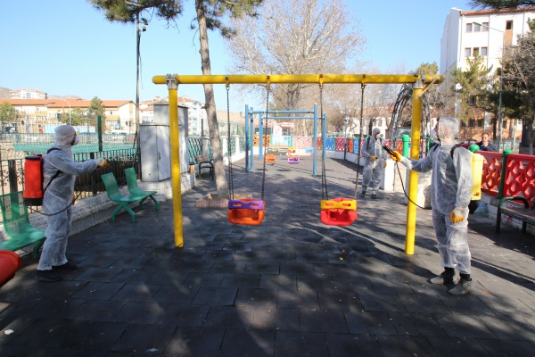 Yeşil alan, park ve kent estetiği çalışmalarını aralıksız sürdüren ekipler, Türkiye’de ilk corona virüs vakasının görülmesinin ardından aldığı önlemleri arttırdı. Dezenfekte çalışmaları kapsamında; vatandaşın yoğun olarak bulunduğu alanlar ile şehir içi parklardaki oyun grupları, kameriyeler, banklar, spor aletleri Sağlık Bakanlığından onaylı solüsyonlar ile temizlendi.
