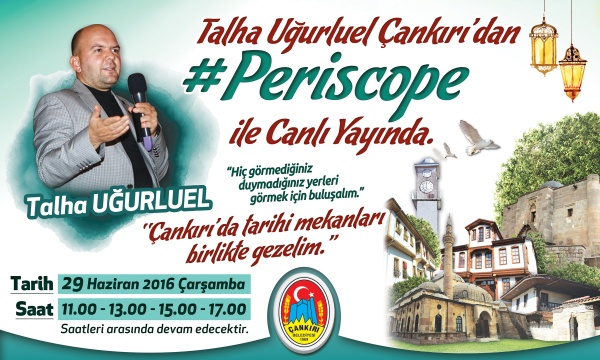 Yaşayan ve yaşatılan tarihi mekânlar,  Başkan Dinç’in facebook hesabı üzerinden eş zamanlı olarak sosyal medyanın yeni fenomeni “Periscope” mobil uygulama sayesinde takipçiler ile birlikte paylaşılacak. Takipçiler, Başkan Dinç ve Uğurluel eşliğinde Çankırı’ya ait bilinmeyen ve keşfedilmemiş güzellikleri birlikte gezecek. “Çankırı’dan Özel” periskop uygulaması, 29 Haziran 2016 Çarşamba günü 11.00–13.00 ile 15.00–17.00 saatleri arasında devam edecek. Uygulama sayesinde kilometrelerce ötede bulunan ve hiç tanımadığımız kişiler, Çankırı’yı Dinç’in ve Uğurluel’in gözünden görecek.