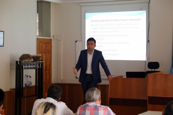Belediye Meclis Salonu’nda gerçekleşen eğitimlere vatandaşlara daha kaliteli hizmet verebilmek için her müdürlükten personel katıldı. Resmi yazışmalarda uygulanacak usul ve esaslar ile ilgili kurallar anlatılırken, resmi yazışmalarda kâğıt boşlukları, yazı karakteri ve yazı boyutlarının nasıl olması ve yazının muhatabına göre (kişi, kurum ya da tüzel kişi) nasıl yazılması gerektiği konularında belediye personeline bilgi verildi.  Seminerlerde uygulamalı örnekler de yer aldı.