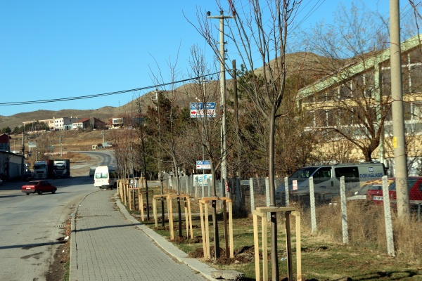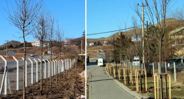 Geçtiğimiz haftalarda ağaçlandırma seferberliği kapsamında yürüttüğü çalışmalarda ıhlamur ağaçlarını toprak ile buluşturan Belediye Park ve Bahçeler Müdürlüğü,  perdeleme gereken alanlar için de ağaç dikimini tercih etti. Ekipler, Eldivan güzergâhı Sanayi giriş yolunu kaldırımdan ayırarak perdeleme yapmak için 30 adet boylu akça ağaç dikti. Sanayi giriş yoluna dikilen ağaçlar, kazıklar ile desteklenerek sağlamlaştırıldı.