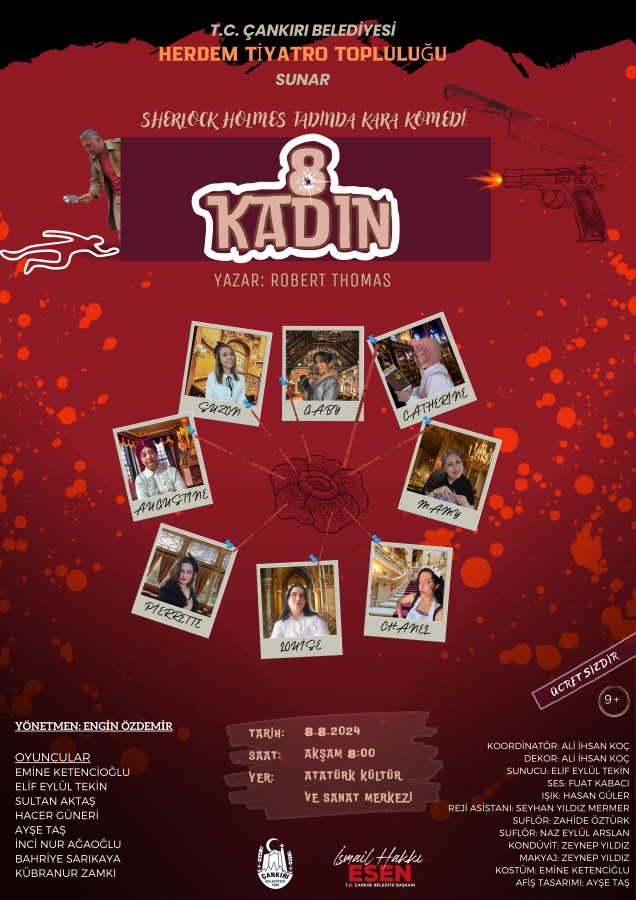 Çankırı Belediyesi Herdem Tiyatro Topluluğu, “Sekiz Kadın” isimli son gösterimleri ile sezonu kapattı. Atatürk Kültür Merkezinde düzenlenen iki perdelik kara komedi oyunu, seyircinin büyük beğenisini topladı. Sadece kadınların yer aldığı oyunda amatör tiyatrocuların performansları göz doldurdu.