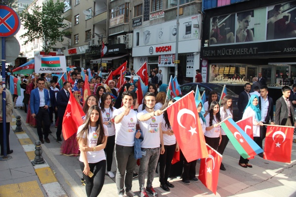Kendi ülkelerinin kültürlerine özgü kıyafetlerle festivale iştirak eden işitme engelli çocuklar, Çankırı'da adeta çiçek açtı. Başkan Dinç ve eşi Zeynep Perihan Dinç'in eşliğinde Belediye Sarayı önünden başlayan kortej yürüyüşünde Çankırı Sokakları, Türkiye, Azerbaycan, Kırgızistan ve Kazakistan'ın renkleri ile donandı. Katılımcı çocukların coşkulu yürüyüşüne vatandaşlar da eşlik etti.