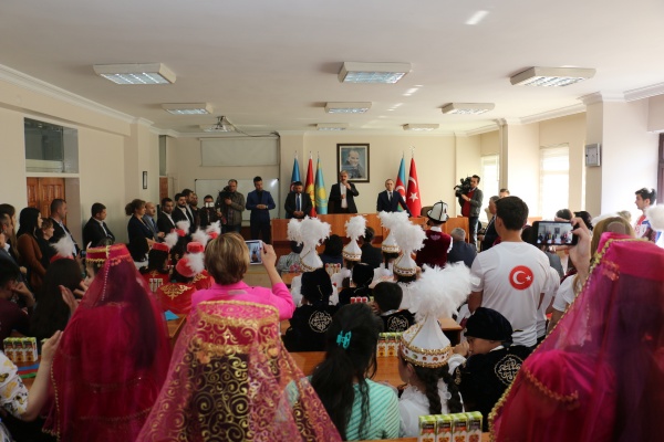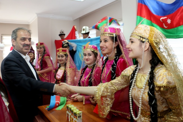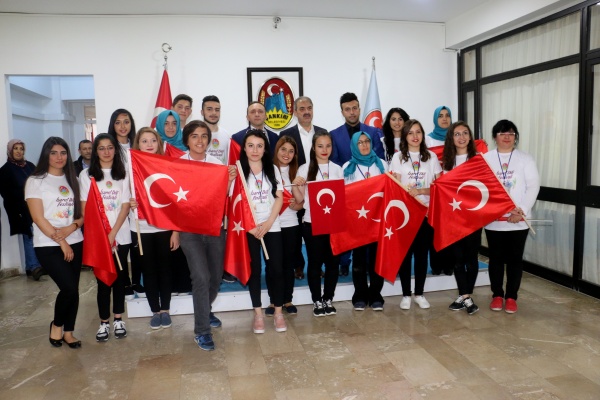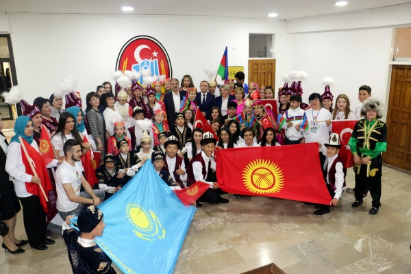 İlk olarak Belediye Meclis Salonu'na gelen katılımcıları Belediye Başkanı İrfan Dinç, tek tek selamladı. TÜRKSOY Genel Sekreter Vekili Elçin Gafarlı ve ülke temsilcileri eşliğinde ülkelerinden ilk defa çıkmış olan çocuklar, ellerindeki bayrakları coşkuyla sallayarak Türkiye'ye olan sevgilerini Başkan Dinç'e gösterdi. Çocuklar, ülkeleri adına getirdikleri hediyeleri de Dinç'e takdim etti. Hediyelerde İşitme Engelli Çocuklar tarafından yapılan Türk Bayraklı resimler dikkat çekti.