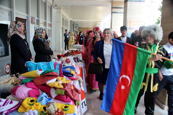 Çankırı ev sahipliğinde bir araya gelen katılımcılar, ülkelerine ait kültürel ürünleri belediye önünde açılan stantta sergiledi.