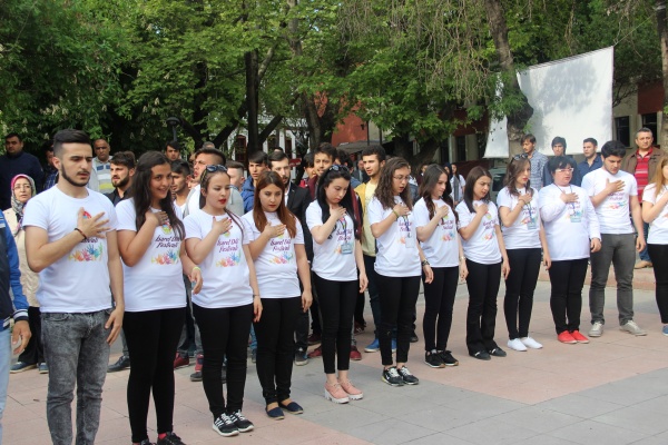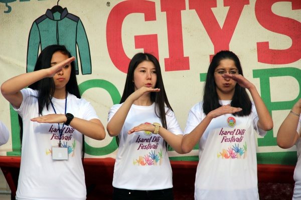 Karatekin Parkı'nda devam eden programa, işitme engelli çocukların kendi ülkelerinin milli marşlarını işaret dili seslendirmeleri damgasını vurdu. Programda İstiklal Marşı, Çankırı Belediyesi Üniversiteli Kız Öğrenciler Koordinasyon Merkezi İşaret Dili Kursiyerlerince işaret diliyle seslendirildi. Daha sonra diğer ülke katılımcılarının milli marşları işaret dili ile okundu. Başkan Dinç, tüm marşlara işaret diliyle eşlik etmeye çalıştı.