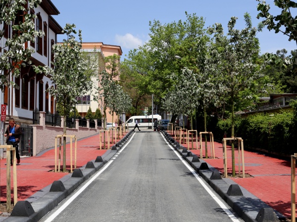 Yukarı Çarşı’yı şemsiyeler ile renklendiren Belediye, Şehir Müzesi’nin yan tarafında bulunan Sinema Sokak’ı da dekoratif asfaltla renklendirdi. Renkli ve desenli asfalttan yapılan karşılıklı kaldırımın kenar kısımları ise 22 adet ıhlamur ağacı ile süslendi. İtalya’nın Pistoia Vadi Bölgesinde özel olarak yetiştirilen düzgün gövdeli gümüşi ıhlamur ağaçları 20 cm’lik çevreye sahip. Yapraklarının üst yüzü koyu yeşil, alt yüzü gümüşi beyaz tüylü olan ağaçlar sayesinde Sinema Sokak ıhlamur kokacak.