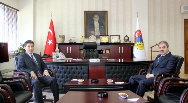 Çankırı Belediye Başkanı İrfan Dinç, KUZKA Yönetim Kurulunda birlikte çalıştığı eski Sinop Valisi Ahmet Cengiz ile kendi makamında bir araya geldi. Başkan Dinç, son kararname ile Mardin’e atanan Vali Cengiz’e yeni görev yerinde de başarılar diledi.