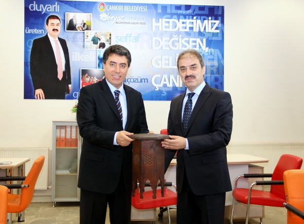 Konuğunu uğurlayan Dinç, ortak bir platformda ve çalışmada bir araya gelme temennisinde bulunarak Vali Cengiz’e Çankırı’yı hatırlatacak bir hediye takdim etti.