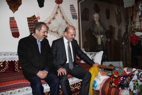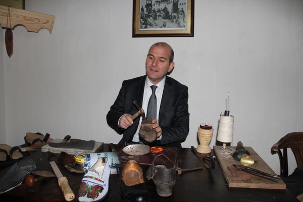 Çankırı Milletvekilleri İdris Şahin, Hüseyin Filiz ve İl Başkanı Salim Çivitçioğlu’nun da eşlik ettiği ziyarette Belediye Başkanı İrfan Dinç’in anlatımıyla medrese odalarındaki yerel kültür çalışmalarını inceleyen Soylu, bebek beşiği sallayıp sembolik olarak kundura tamiri yaptı.