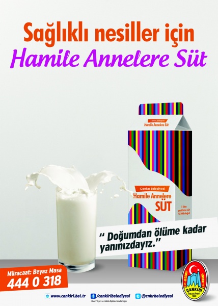 Çankırı Belediyesi durumu iyi olmayan hamile bayanları tespit edip her ay evlerine süt bırakıyor. Hamilelik esnasında ihtiyacı olan süt miktarını tespit eden belediye ekipleri doktorların tavsiyesi ve önerisi ile ihtiyaç sahibi annelere gerekli oranda süt hizmeti sunuyor.