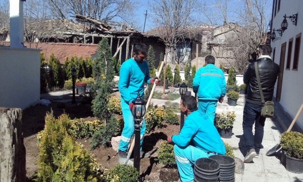 Konağın tarihi dokusu, peyzaj düzenlemelerine de taşındı. Bitkisel tasarım, konağın yapısına uygun olarak kullanılan traversler ile desteklendi. Avlunun peyzaj düzenlemesi dinlence bahçesine uygun olarak tasarlandı. Avlunun tam ortasına yerleştirilen süs elması ise ilkbahar döneminde açacak pembe çiçekleri ile ortamı renklendirecek.
