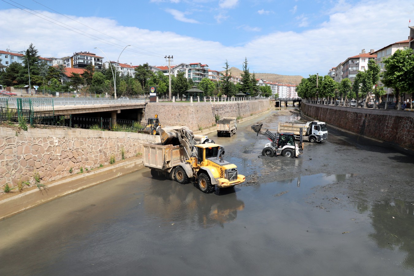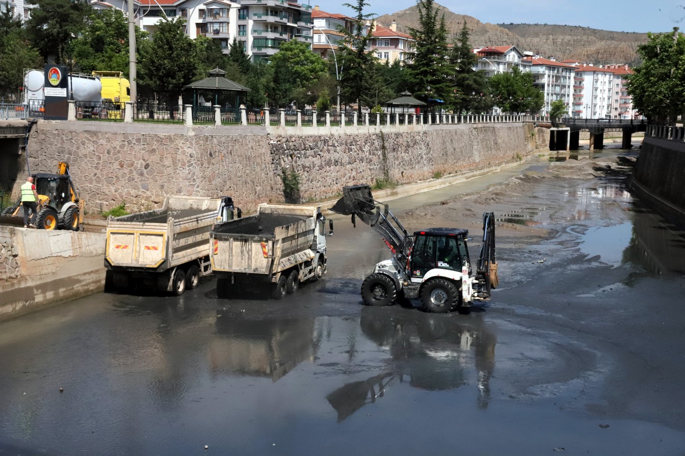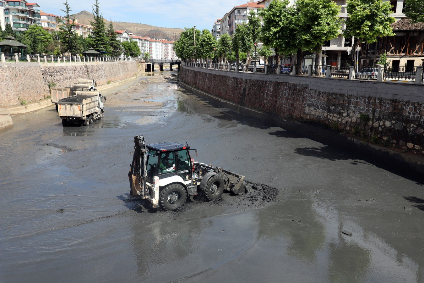 Çankırı’da Belediye ekipleri Tatlıçay’a indi. Başlatılan temizlik çalışmalarında kepçeler, çay yatağında biriken yığınları büyük kamyonlara yükleyerek rüsubat temizliğine başladı.