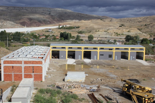 Fen İşleri Müdürlüğüne bağlı ekipler, yeni asfalt şantiyesinin bulunduğu alanda özellikle kış mevsiminde Belediye araç filosunda bulunan tankerler, asfalt finisherleri, asfalt yama robotu gibi donanımlı araçların muhafaza edilebilmesi için kapalı hangar yapımına başladı. Yaklaşık 500 metrekare kapalı alanın prefabrik kolon ve kirişleri monte edilerek dış duvarları tamamlandı. Ekipler, çatı kaplamasına başlayacak.