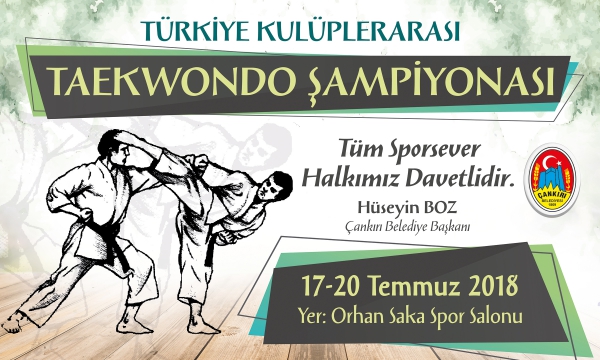 Türkiye Kulüplerarası Taekwondo Şampiyonası 17 Temmuz 2018’de Çankırı’da düzenlenecek. Türkiye Taekwondo Federasyonu’nun 16–20 Temmuz tarihleri arasında gerçekleştirilecek program, teknik toplantı ve sporcuların tartıları ile başlayacak. Vatandaşlar, 17 Temmuz’da başlayacak müsabakaları dört gün boyunca ücretsiz olarak izleyebilecek. Şampiyona, 20 Temmuz Cuma günü düzenlenecek ödül töreni ile sona erecek. Vatandaşların müsabakaları izlemek için gerekli katılımı göstermelerini ve misafirlerin Çankırı’dan iyi izlenimler ile ayrılmasını istediklerini belirten Belediye Başkanı Hüseyin Boz, müsabakalara katılacak tüm takımlara başarılar diledi.
