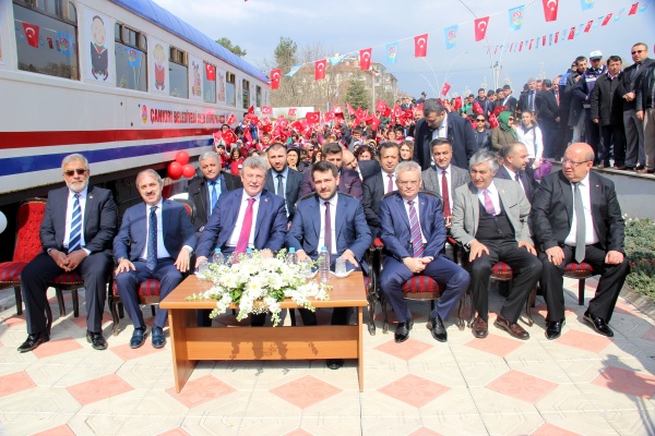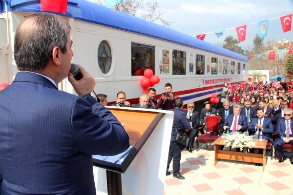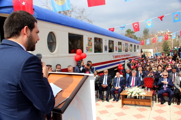 Gençlik ve Spor Bakan Yardımcısı Abdurrahim Boynukalın ise yaşanan terör olaylarının Türkiye'nin gelişimini engellemeye yönelik olduğunu belirterek " Türkiye'nin en büyük derdi terör belası, terör belası dediğimiz şey bilgisizlikten cehaletten geldiğini biliyoruz. Bir tarafta kütüphaneler yapan, eğitime yatırım yapan bir anlayış var. Bu kütüphanelerden yararlanacak çocuklarımız yarın bu medeniyetin değerleri içinde yetişecek ve bu ülkenin milletvekilleri, bakanları, bakan yardımcıları valileri olacak. Diğer tarafta okul yakan derslikleri yakan, bizim yaptığımız yolları perişan eden, hava yollarını bombalayan, kitapları yakanlar, en önemlisi Kur'an- Kerimleri yakan, camileri yakanların nesilleri savrulup gidecek. Aramızdaki fark bu. Biz kardeşlerimiz için yavrularımız için sporun olduğu, eğitimin olduğu bu milletin dertleri ile dertlenen bir tasavvura sahibiz. Çankırı Belediyesi'nin farklı tasarımlarla gerçekleştirdiği kütüphanelerin çocuklarımızın gelişimine önemli katkılar sağlayacağını düşünüyorum. Emeği geçenlere teşekkür ediyorum. Tren Kütüphanesi hayırlı olsun" dedi.