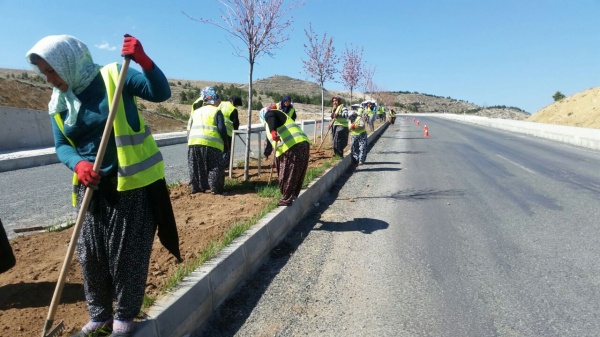 Uluyazı yerleşkesi orta refüj çalışmalarında Çalışma ve Sosyal Güvenlik Bakanlığının Toplum Yararına Program (TYP) kapsamında kura sitemi ile Çankırı Belediyesinde geçici olarak işe başlayan 25 kadın işçi görev aldı.