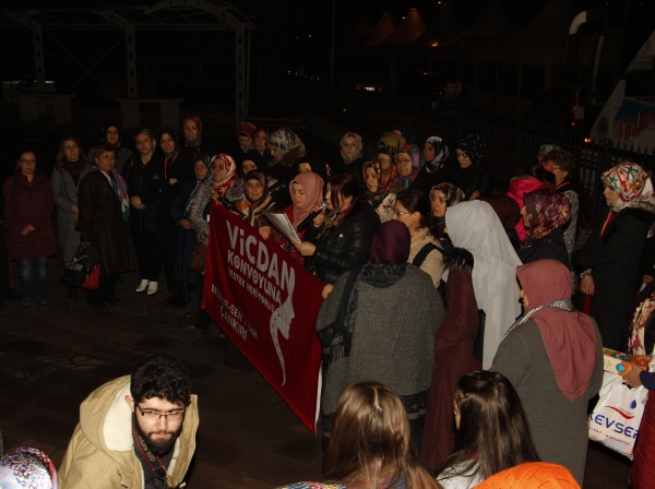 Ahmet Yesevi Camisi'nde kılınan yatsı namazının ardından cami bahçesinde bir araya gelen 45 kadın, yola çıkmadan önce basın açıklaması yaptı.