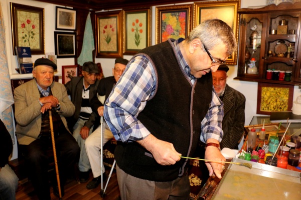 Ney dinletisi eşliğinde ebru ustasının ellerinden çıkan eserler, yaşlıları sanatsal bir yolculuğa çıkardı. Tarihi bir mekanda olmanın etkisi ile yaşlılar eski günleri de yad ettiler.