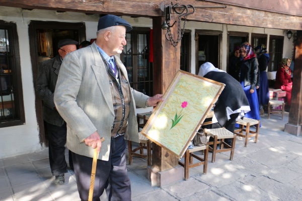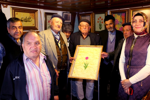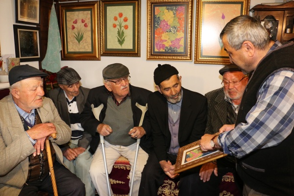 Etkinlikte yapılan ebrular, günün anısına yaşlılara hediye edildi.