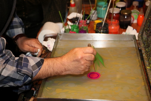 Düzenlenen etkinlikte medresenin ebru ustası Ali Akgül, yaşlılalara ebru sanatı hakkında bilgi verdi. Yaşlılar ebru ustasını dikkatlice takip ederek, ebru sanatının nasıl icra edildiğini yakından gördüler. Lalenin Allah'ı, gülün ise Hz. Peygamberimizi temsil ettiği ebru sanatı karşısında hayranlıklarını gizleyemeyen yaşlılar, yapılan işlemleri heyecan ve ilgi ile izlediler. Daha sonra yaşlılar ebru ustasının yardımı ile ebru yapmaya çalıştılar. Biraz zorlansalar da içerisine sevgilerini katarak suya dokundurdukları boyalar dikkate değer eserler ortaya çıkardı. Yapılan eserler, kurutma sehpasında kurutulmaya bırakıldı.