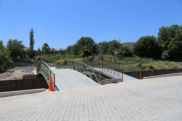 Belediye imkânları ile 15 m uzunluk ve 3,5 m genişlikte imal edilerek bölgeye monte edilen çelik köprü ile hem yayalara hem de araç sahiplerine rahat bir geçiş imkânı sağlanıyor.