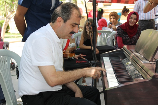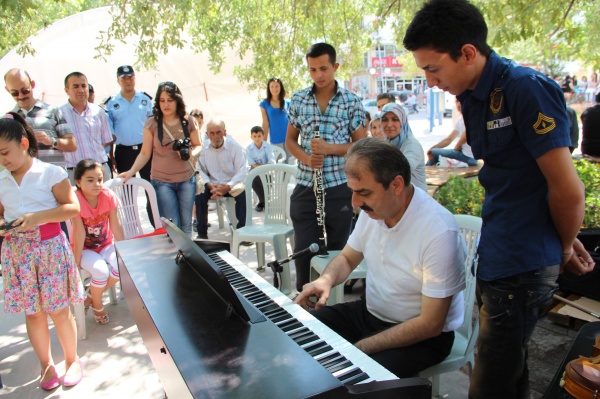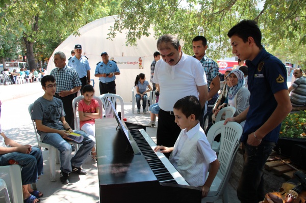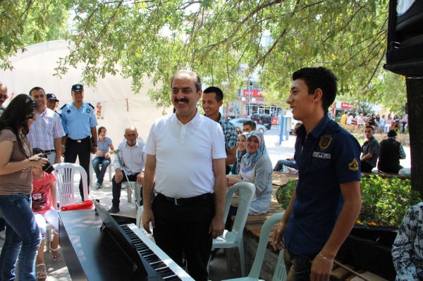 Alana gelerek kursları tek tek gezen Belediye Başkanı İrfan Dinç ve eşi Zeynep Dinç, eğitmenleri ve öğrencileri tebrik etti. Piyano dersine katılan Başkan Dinç, öğrencilerin etüt çalışmalarını dinledikten sonra öğrenmenin yaşı yoktur diyerek piyanonun başına geçti. “Neşeli ol ki genç kalasın” adlı şarkıyı başarıyla çalan Başkan Dinç, izleyenlerden büyük alkış aldı. Daha sonra Ney kursuna katılan Dinç, seslendirilen ilahiye eşlik etti. Ayrıca; belediyenin Güzel Sanatlar Liseleri’ne hazırlık resim kursuna katılan öğrencilerden Bahar Yeşil de Selahattin İnal Anadolu Güzel Sanatlar ve Spor Lisesi resim bölümü yetenek sınavlarını aldığı 75 puanla birincilikle kazandı. Başkan Dinç, bu başarısından dolayı Bahar Yeşil’i tebrik etti.