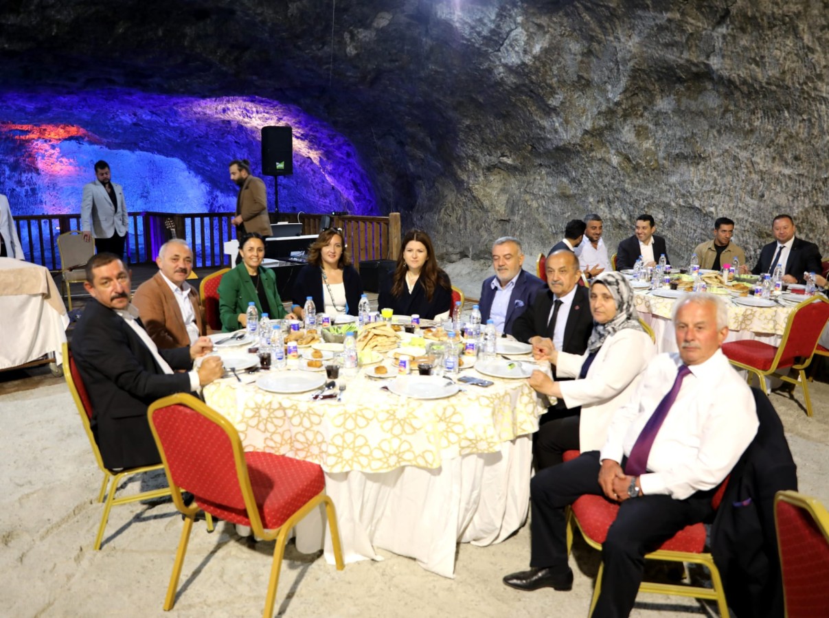 Çankırı, TUZFEST’23’ün ilk gününde yerli ve yabancı misafirlerin akınına uğradı. Başkan Esen, protokol misafirlerini Yer Altı Tuz Şehri’ne dönüştürdüğü Tuz Mağarası’nda ağırladı. Tuzdan şehri gezen konuklar, mağaranın galerilerinde sergilenen tuzdan yapılmış heykeller ile sanat eserlerini gezdi. Tuz Mağarasının farklı atmosferini yerinde görme fırsatı yakalayan katılımcılara kaya tuzunda pişirilmiş yöresel yemekler ikram edildi. Görsel şölene dönen yöresel yemek ikramı, Çankırı tanıtımında konuklardan tam puan aldı.