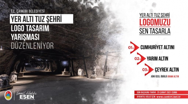Kadim kültüründen aldığı güç ve modern dokunuşlar ile turizmin önemli bir lokomotifi olma yolunda ilerleyen Çankırı Yer Altı Tuz Şehri için düzenlenen logo tasarım yarışmasında birinci seçilen tasarım sahibi, Cumhuriyet altını ile ödüllendirilecek. Yarışmada ikinciye yarım altın, üçüncüye çeyrek altın verilirken jüri özel ödülüne layık görülen eser sahibine ise ödül olarak gram altın verilecek.