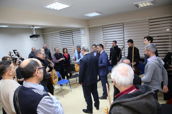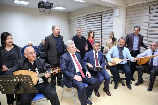 Çankırı Nurettin Ok Halk Eğitim Merkezi Makamsal Türk Halk Müziği Korosu, çalışmaları esnasında kendilerine sürpriz yapan AK Parti Grup Başkan Vekili ve Millitvekili Av. Muhammet Emin Akbaşoğlu ile Çankırı Belediye Başkanı ve AK Parti Belediye Başkan Adayı Hüseyin Boz’un ziyareti ile şaşırdı. Koro çalışmalarını dinleyen Milletvekili Akbaşoğlu ve Başkan Boz, bir süre sonra koroya katılarak birbirinden güzel türkülere eşlik etti. Çankırı’da 31 Mart Yerel Seçim çalışmalarını sıkı tutan ekip, türküler eşliğinde moral ve motivasyonunu daha da artırdı. Başkan Boz, “Bu akşam gönül köprülerimizi türkülerle kurduk. Bu ekip, müzik sever gönüllü arkadaşların çabaları ile kurulmuş. Onlarla ortak bir yanımız var. Bir iş muhabbet ile başlayıp gönül ile tutulunca sonu da muvaffakiyet ile biter.” dedi.