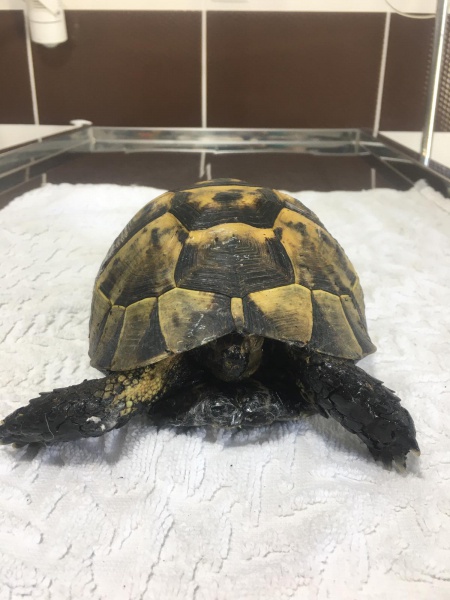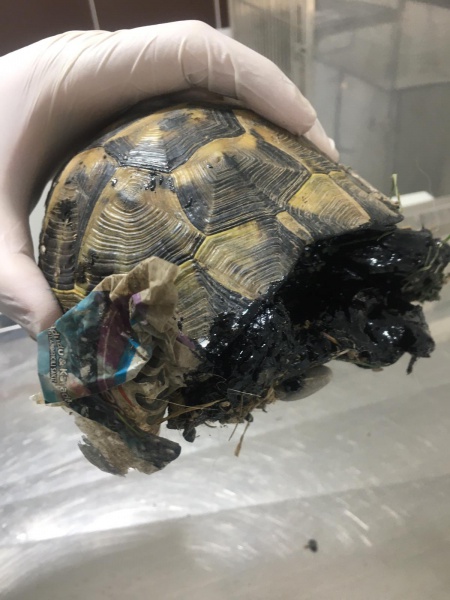 Çankırı’da üzerine zift bulaşan kaplumbağa, bir süre sonra solunum yetersizliği çekerek hareket kabiliyeti azaldı. Vatandaşların bularak getirdiği küçük kaplumbağaya, Çankırı Belediyesi’ne ait Sokak Hayvanları Rehabilitasyon Merkezinde acilen müdahale edildi. Üzerindeki ziftten kurtulması ile solunumu düzene giren küçük canlının tedavisinin devam ettiği ve gözetim altında tutulduğu bildirildi.