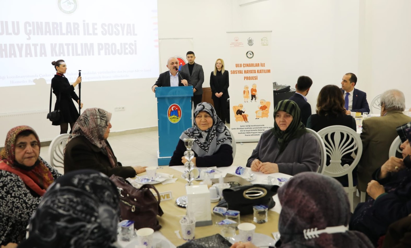 Çankırı Belediyesi Sosyal Tesis’te düzenlenen proje toplantısına Çankırı’da yaşayan 65 yaş üstü vatandaşlar ile projeye gönüllü olarak destek verecek kişiler katıldı. İlginin yoğun olduğu programda açılış konuşması yapan Çankırı Belediye Başkanı İsmail Hakkı Esen, “Ben büyüklerimden duyduklarımla büyüdüm, benim çocuklarım da öyle büyüdü. İnşallah bu ataerkil yapı devam eder. Biz her zaman bereketin büyüklerde olduğuna inanıyoruz. Daha yaşanabilir ve kaliteli bir şehir yapma adına, gençlerimiz bu şehirde kalsın diye elimizden geleni yapıyoruz. İnşallah bizden sonra gelecek nesiller de anneanneleri, babaanneleri dedeleri ile birlikte büyürler. En büyük kitap sizlersiniz. Siz ulu çınarları güzel yaşatmak boynumuzun borcu.” dedi. Program sonunda Çankırı Valisi Mustafa Fırat Taşolar ve Başkan Esen, programa katılan büyüklerinin hatırını sorarak ellerini öptü.
